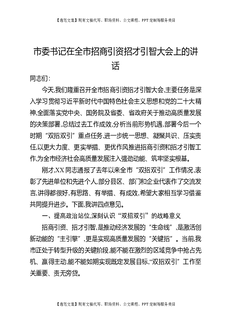 市委书记在全市招商引资招才引智大会上的讲话.docx