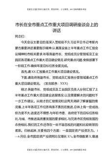 市长在全市重点工作重大项目调研座谈会上的讲话.docx