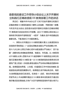 县委党的建设工作领导小组会议上关于开展树立和践行正确Z绩观XX教育部署工作的讲话.docx