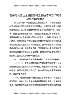 医保局长传达全省推进村卫生站结算工作现场会会议精神讲话.docx