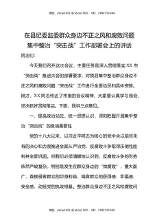 在县纪委监委群众身边不正之风和腐败问题集中整治突击战工作部署会上的讲话.docx