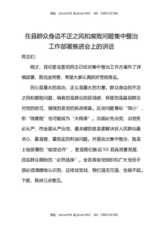 在县群众身边不正之风和腐败问题集中整治工作部署推进会上的讲话.docx