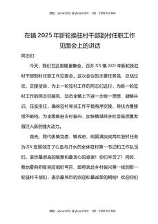 在镇2025年新轮换驻村干部到村任职工作见面会上的讲话.docx