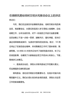 在镇移风易俗培树文明乡风推动会议上的讲话.docx