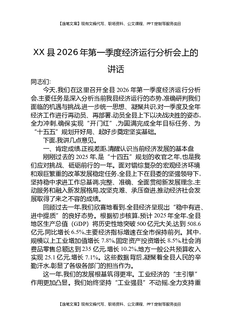 XX县2026年第一季度经济运行分析会上的讲话.docx