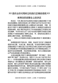XX县农业农村局树立和践行正确Z绩观XX教育动员部署会上的讲话.docx
