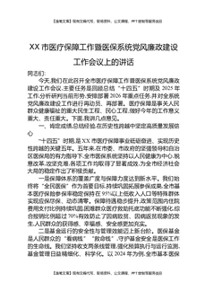 XX市医疗保障工作暨医保系统党风廉政建设工作会议上的讲话.docx