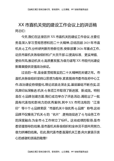 XX市直机关党的建设工作会议上的讲话稿.docx