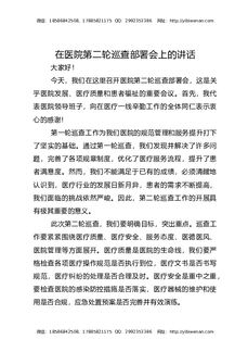 在医院第二轮巡查部署会上的讲话.docx