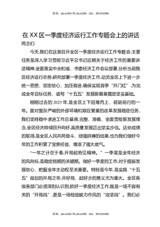 在XX区一季度经济运行工作专题会上的讲话.docx