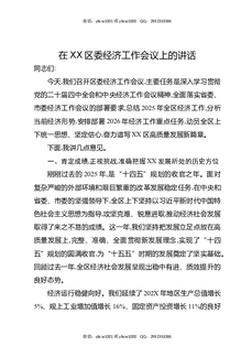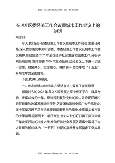 在XX区委经济工作会议暨城市工作会议上的讲话.docx