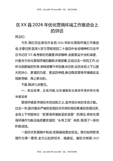 在XX县2026年优化营商环境工作推进会上的讲话.docx