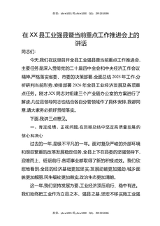 在XX县工业强县暨当前重点工作推进会上的讲话.docx