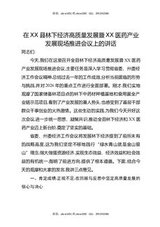 在XX县林下经济高质量发展暨XX医药产业发展现场推进会议上的讲话.docx