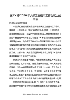 在XX市2026年大抓工业强市工作会议上的讲话.docx