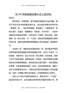 在XX市2026年经济高质量发展大会上的讲话.docx