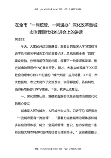 在全市一网统管一网通办深化改革暨城市治理现代化推进会上的讲话.docx