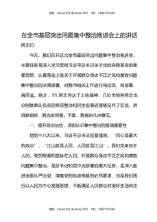 在全市基层突出问题集中整治推进会上的讲话.docx