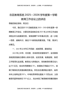 在区教育系统2025-2026学年度第一学期教育工作会议上的讲话.docx
