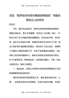 在区秸秆综合利用与精准禁烧管控专题协商会议上的讲话.docx