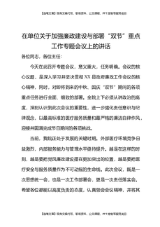 在单位关于加强廉政建设与部署双节重点工作专题会议上的讲话.docx