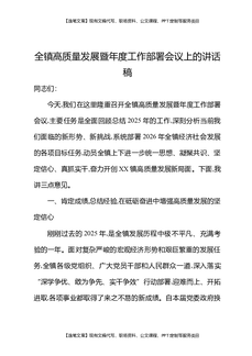 全镇高质量发展暨年度工作部署会议上的讲话稿.docx