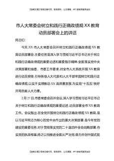 市人大常委会树立和践行正确Z绩观XX教育动员部署会上的讲话.docx