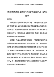 市委市政府在全市振兴发展工作推进会讲话稿.docx