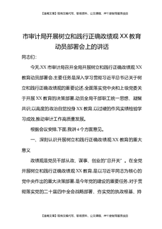 市审计局开展树立和践行正确Z绩观XX教育动员部署会上的讲话.docx