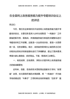 在全县网上政务服务能力提升专题培训会议上的讲话.docx