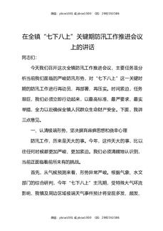 在全镇七下八上关键期防汛工作推进会议上的讲话.docx