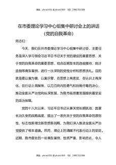 在市委理论学习中心组集中研讨会上的讲话党的自我革命.docx
