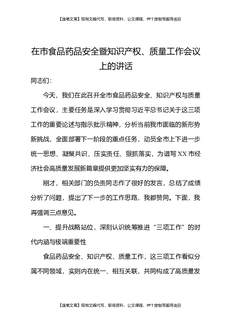 在市食品药品安全暨知识产权质量工作会议上的讲话.docx