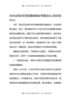 在水业党总支党风廉政建设专题会议上的讲话.docx