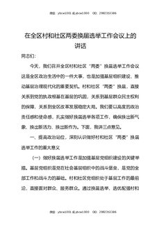 在全区村和社区两委换届选举工作会议上的讲话.docx