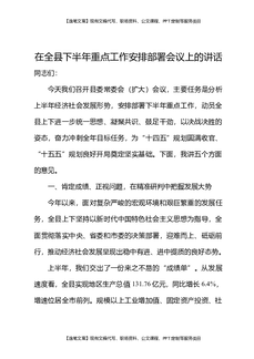 在全县下半年重点工作安排部署会议上的讲话.docx