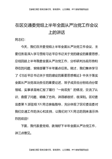 在区交通委党组上半年全面从严治党工作会议上的讲话.docx