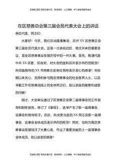 在区慈善总会第三届会员代表大会上的讲话.docx