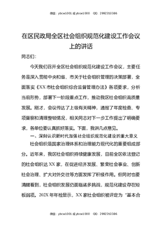 在区民政局全区社会组织规范化建设工作会议上的讲话.docx