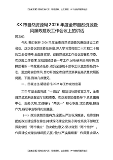 XX市自然资源局2026年度全市自然资源暨党风廉政建设工作会议上的讲话.docx