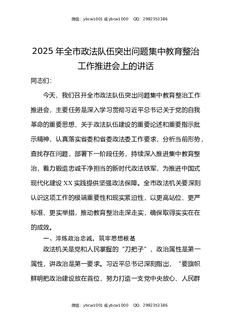 2025年全市政法队伍突出问题集中教育整治工作推进会上的讲话.docx