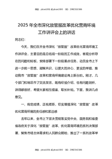2025年全市深化放管服改革优化营商环境工作讲评会上的讲话.docx