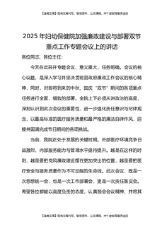 2025年妇幼保健院加强廉政建设与部署双节重点工作专题会议上的讲话.docx