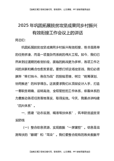 2025年巩固拓展脱贫攻坚成果同乡村振兴有效衔接工作会议上的讲话.docx