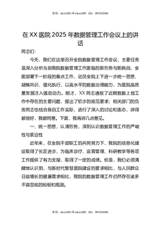 在XX医院2025年数据管理工作会议上的讲话.docx