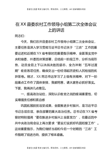 在XX县委农村工作领导小组第二次全体会议上的讲话.docx