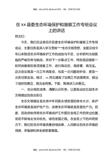 在XX县委生态环境保护和督察工作专班会议上的讲话.docx