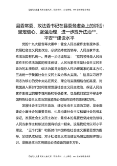 县委常委、政法委书记在县委务虚会上的讲话:坚定信心、坚强治理,进一步提升法治、平安建设水平.docx