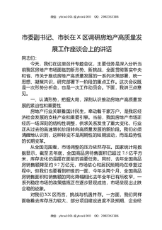 市委副书记、市长在X区调研房地产高质量发展工作座谈会上的讲话.docx