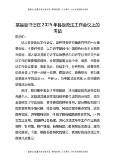 某县委书记在2025年县委政法工作会议上的讲话.docx